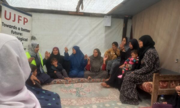 C’est de cette réalité qu’est née l’atelier « Confessions de femmes », mis en œuvre par l’équipe de l’UJFP dans l’un des camps situés à l’ouest de la ville de Gaza, avec la participation de vingt-cinq femmes déplacées. Cet espace ouvrait une porte essentielle, celle de la parole.