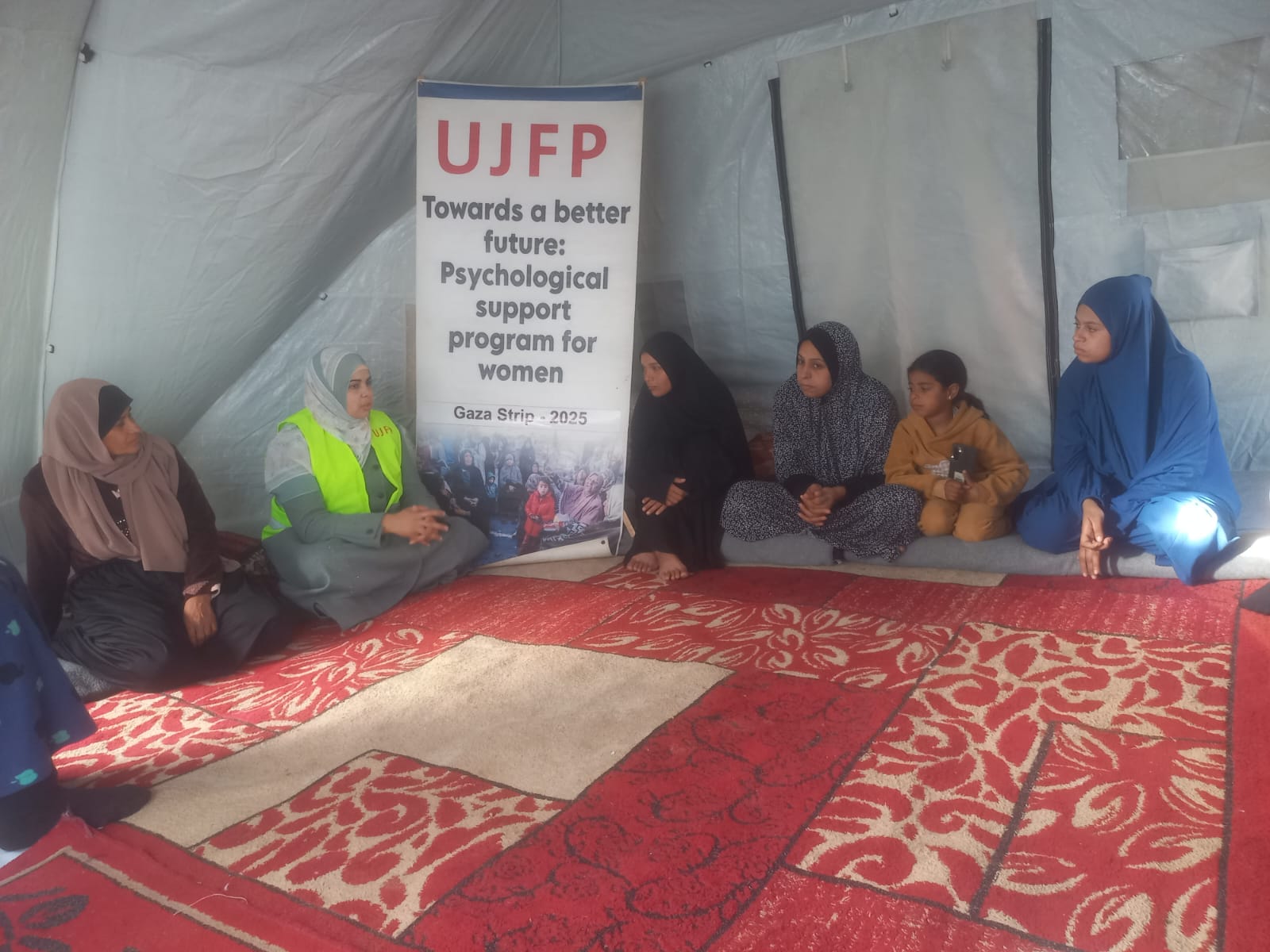 Vingt femmes déplacées, toutes mères au foyer, ont participé à l’atelier. Elles représentaient des parcours et des expériences variés, réunies par les circonstances du déplacement et la préoccupation commune d’assurer les besoins de leurs familles. L’atelier a été organisé par l’équipe UJFP, dans le cadre de ses programmes visant à soutenir les groupes marginalisés, en particulier les femmes dans les zones de déplacement. Cet atelier s’inscrit dans une série d’activités combinant soutien humanitaire et accompagnement psychosocial communautaire.
