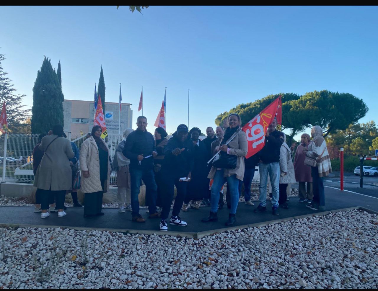 Les voilà de retour devant le CHU avec leurs drapeaux de la CGT. Après leur grève de plus de deux mois à l’automne 2023 pour de meilleures conditions de travail, les salariés d’Onet se mobilisent de nouveau depuis ce jeudi 30 octobre. En cause, une réaffectation des salariés nettoyant le Site Unique de Biologie, regroupant quasiment tous les laboratoires du CHU de Montpellier, sur d’autres tranches horaires, sans consultation préalable du Comité Social d’Entreprise (instance de représentation des salariés auprès de l’employeur), comme cela devrait être normalement le cas.