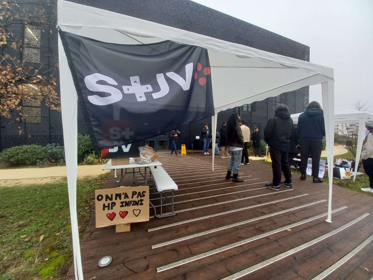 Devant les locaux montpelliérains de l’entreprise de jeu vidéo Ubisoft, ce mardi 10 février, il y a cette pancarte. On y voit trois cœurs dont deux remplis de rouge, dessinés à la manière d’une barre de vie dans un jeu vidéo, accompagnés de la mention “On n’a pas HP [points de vie, ndlr] infini”. Derrière la référence geek pleine d’humour, on sent une inquiétude palpable chez les salariés.