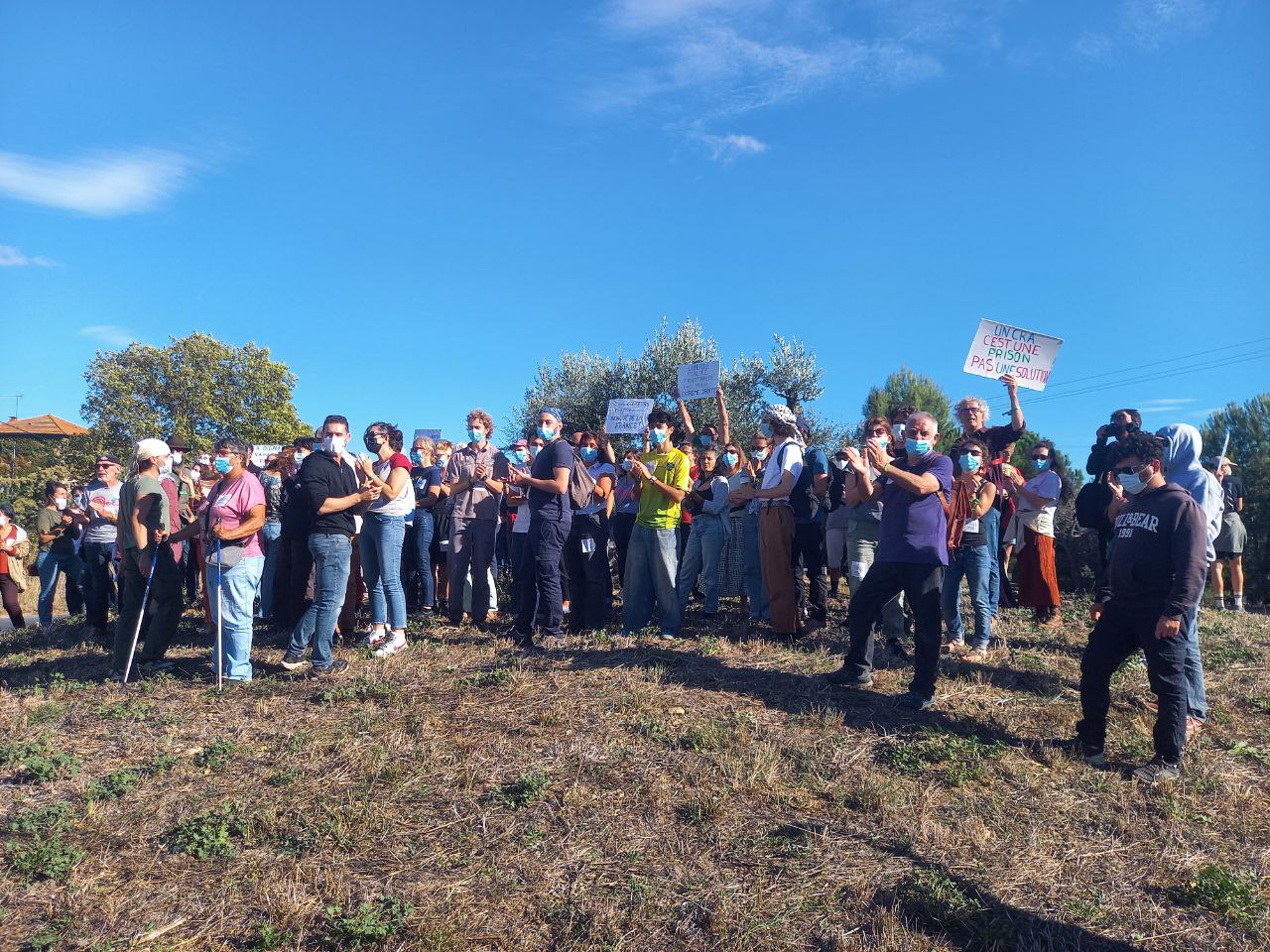 “On voulait planter un olivier et semer des coquelicots, symbole de libertés, sur le terrain, mais la police nous interdit d’y aller, c’est dire la place qu’occupe la question de l’immigration dans ce pays…”, commente Nicolas, membre du collectif anti-CRA de Béziers, créé il y a plus d’un an et demi.
